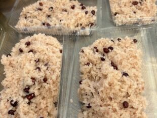 2月15日(日)に地域の農家のおばあちゃんに、赤飯と里いもの煮っ転がしを教えて いただきました。 ポピュラーなささげを使用したレシピを配布し、実習にはちょっと大きめの大納言と、 舞岡...